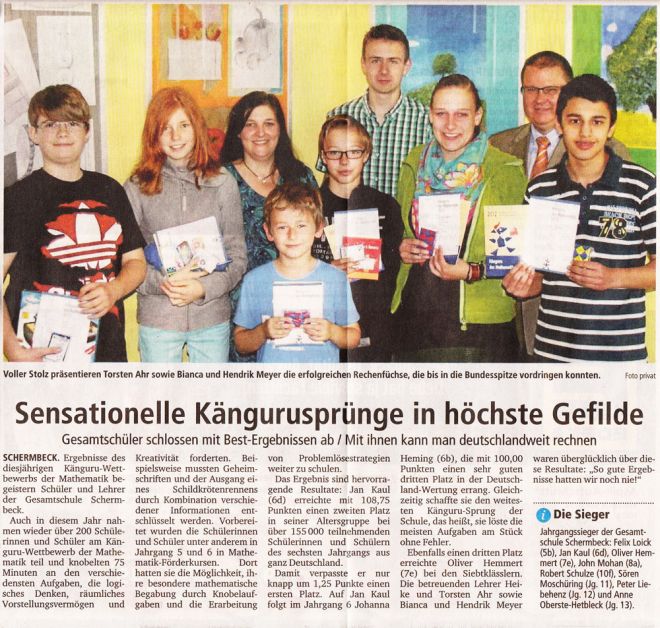 Die Gesamtschule Schermbeck ist die weiterführende Schule für Schermbeck und genießt großes Vertrauen bei Eltern und Schülerinnen und Schülern aus Schermbeck und den umliegenden Kommunen. Die Schülerinnen und Schüler aus Dorsten, Raesfeld, Kirchhellen, Marienthal usw. haben bei der Anmeldung dieselben Chancen zur Aufnahme wie diejenigen aus Schermbeck. Immer wieder auftretende Gerüchte, die etwas anderes behaupten, sind einfach falsch.