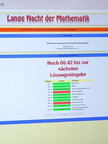 In Runde zwei gab es die nächsten zehn Aufgaben, die natürlich noch einmal kniffliger waren als die der ersten Runde. Um 6.15 Uhr waren acht der zehn Aufgaben gelöst. Möglich war dies durch eine unglaubliche Energieleistung und den Willen, auch die letzte Runde zu erreichen. Die hartnäckigsten Schülerinnen und Schüler knobelten und diskutierten, kombinierten all ihr mathematisches Wissen und gaben nicht auf. Trotzdem reichte die Zeit bis 8 Uhr nicht mehr, um auch die letzten zwei Aufgaben zu lösen. Als die Kinder und Jugendlichen das Schulgebäude blass und mit dunklen Augenringen verließen, waren sich alle einig: Im nächsten Jahr wird der nächste Versuch gestartet, in die dritte und letzte Runde zu kommen.