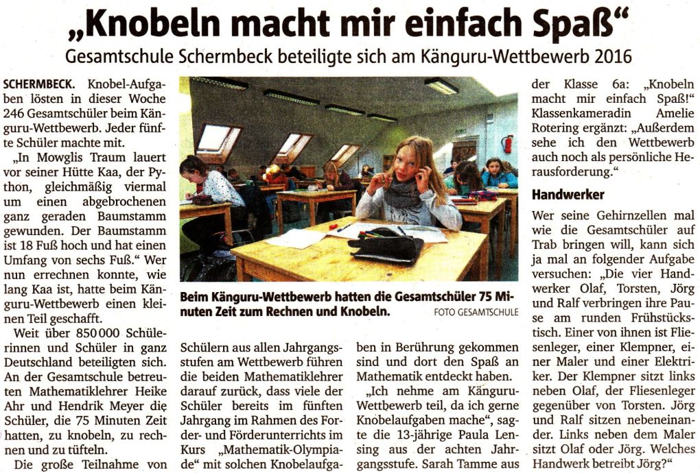 „Gesamtschule Schermbeck – Känguru-Wettbewerb 2016“ (18.03.2016)