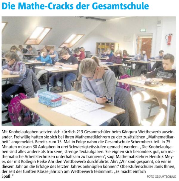 Die Gesamtschule Schermbeck ist die weiterführende Schule für Schermbeck und genießt großes Vertrauen bei Eltern und Schülerinnen und Schülern aus Schermbeck und den umliegenden Kommunen. Die Schülerinnen und Schüler aus Dorsten, Raesfeld, Kirchhellen, Marienthal usw. haben bei der Anmeldung dieselben Chancen zur Aufnahme wie diejenigen aus Schermbeck. Immer wieder auftretende Gerüchte, die etwas anderes behaupten, sind einfach falsch.