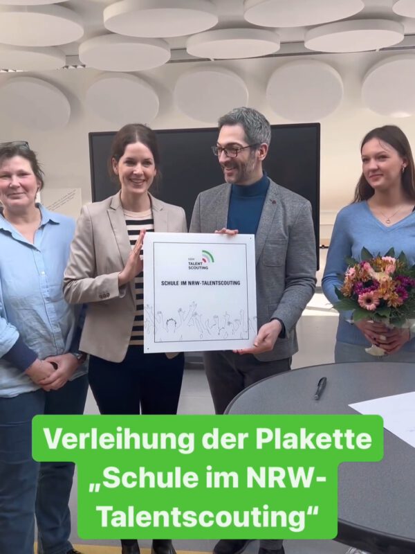 Plakette „Schule im NRW-Talentscouting“ von der Westfälischen Hochschule erhalten.