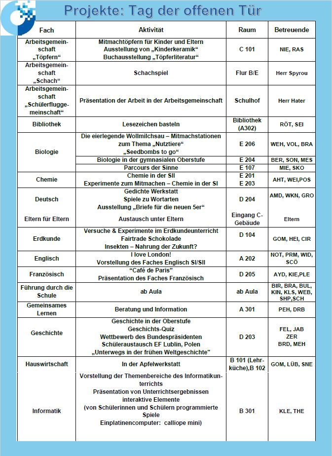 Wenn Sie die eine oder andere Information vermissen, dann rufen Sie uns bitte an oder schreiben Sie uns oder vereinbaren Sie einen Besuchstermin mit der Schulleitung, mit Lehrerinnen und Lehrern, oder sprechen Sie Eltern oder Schülerinnen und Schüler an.