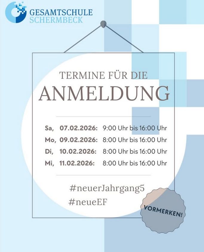 Die Gesamtschule Schermbeck ist die weiterführende Schule für Schermbeck und genießt großes Vertrauen bei Eltern und Schülerinnen und Schülern aus Schermbeck und den umliegenden Kommunen. Die Schülerinnen und Schüler aus Dorsten, Raesfeld, Kirchhellen, Marienthal usw. haben bei der Anmeldung dieselben Chancen zur Aufnahme wie diejenigen aus Schermbeck. Immer wieder auftretende Gerüchte, die etwas anderes behaupten, sind einfach falsch.