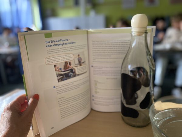 Auch die Vermittlung von Zugängen zu Sach- und Gebrauchstexten steht im Fokus. Wann immer möglich, versuchen wir, einen Praxisbezug herzustellen, wie die Bilder aus der Unterrichtsreihe „Vorgangsbeschreibungen“ im Jahrgang 7 zeigen: