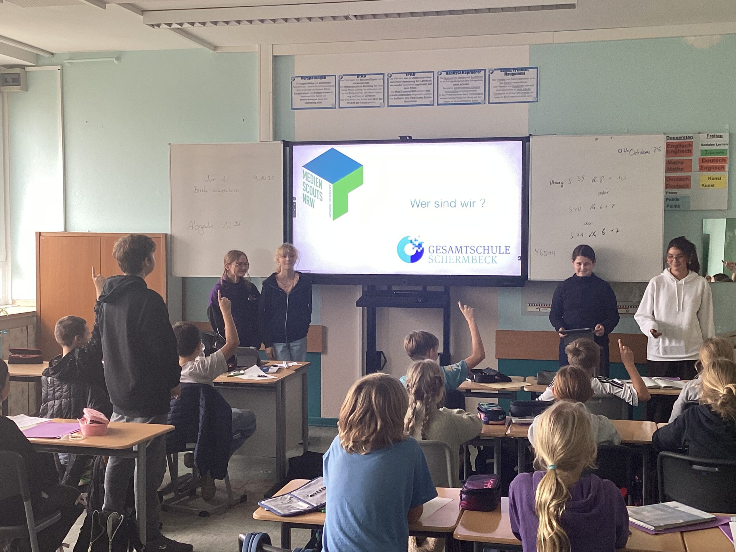 Wir sind die Medienscouts unserer Schule. Wir sind zehn Schülerinnen und Schüler und setzten uns dafür ein, euch sicher durch die Medien zu führen und euch bei Problemen zu helfen. Unser Motto lautet „sicher und fair im Netz agieren.“