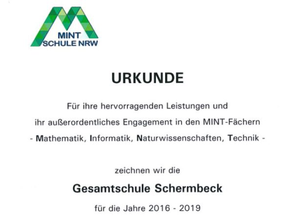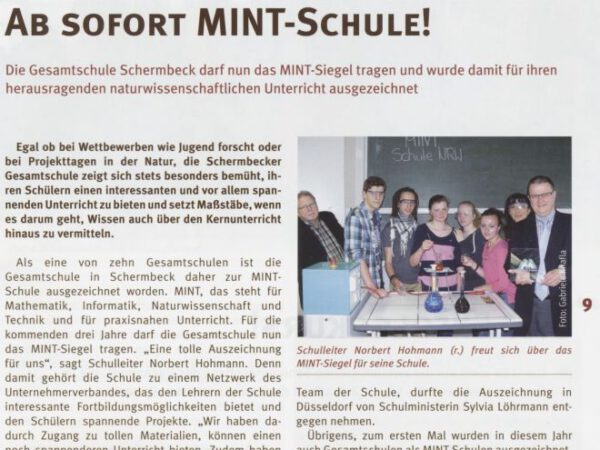Link zum Bericht: "Gesamtschule erhielt erneut das Gütesiegel MINT SCHULE NRW" (Schermbeck-Online, 16.04.2016)