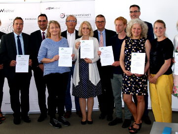 Das Netzwerk der MINT-SCHULEN in NRW hat in diesem Jahr erneut Zuwachs bekommen: Für ihr besonderes Engagement im mathematisch-naturwissenschaftlichen Bereich hat die Landesvereinigung der Unternehmensverbände Nordrhein-Westfalen (unternehmer nrw) eine Hauptschule, vier Realschulen und zehn Gesamtschulen neu ausgezeichnet. Die Ministerin für Schule und Weiterbildung des Landes NRW, Sylvia Löhrmann, überreichte gemeinsam mit Dr. Hans-Jürgen Forst, Vorstandsmitglied von unternehmer nrw, den Schulen in Düsseldorf das Gütesiegel „MINT SCHULE NRW“. 20 weitere Schulen erhielten im Rahmen der Rezertifizierung erneut die Urkunde zur MINT SCHULE NRW und damit die Bestätigung ihrer langjährigen vorbildlichen Arbeit im MINT-Bereich.