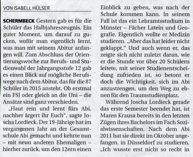 Ehemalige Schüler berichten über ihren beruflichen Werdegang