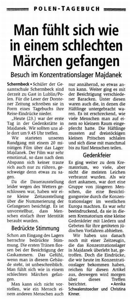 Gedenkstättenfahrt 2007 - Presseberichte