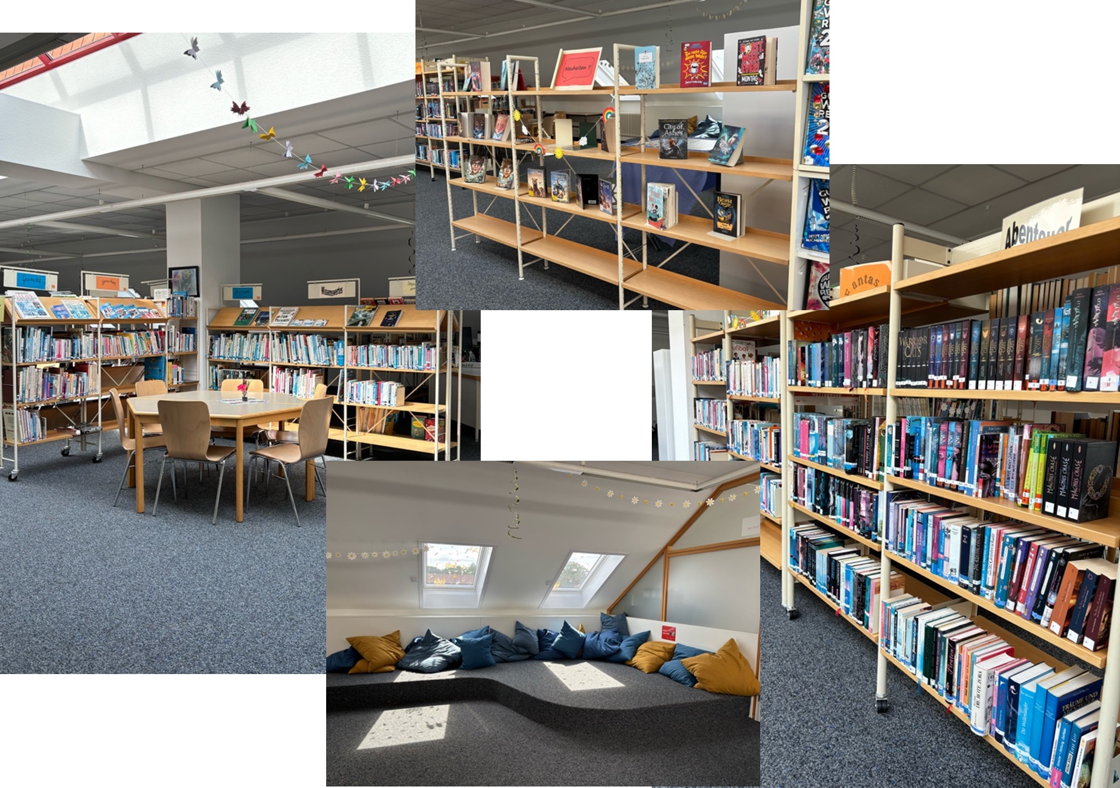 Wer Lust auf eine kleine Auszeit vom Schulalltag hat, ist ebenfalls herzlich willkommen: In unserer Bibliothek gibt es viel zu entdecken!